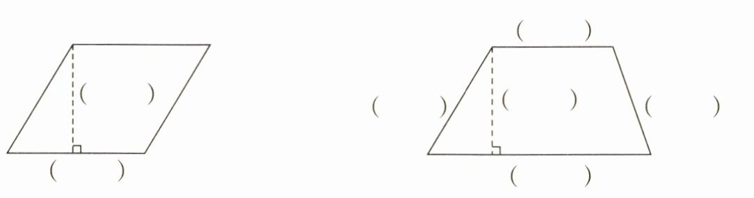 第一个图形括号依次填:高、底;第二个图形括号依次填:上底、腰、高、腰、下底