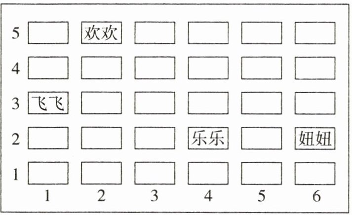 4.贝贝的位置是(5,5),请在图中标出他的位置。聪聪在贝贝正前方的第一个位置上,聪聪的位置是(