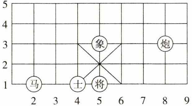 五、如下图,“士”的位置是$(4,1)$。