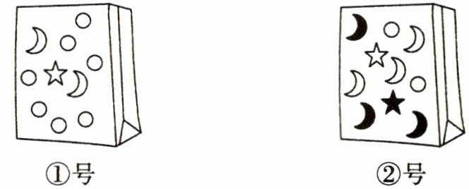 在②号纸袋里摸到🌙或☀️的可能性大,摸到☆或★的可能性小。(答案不唯一)