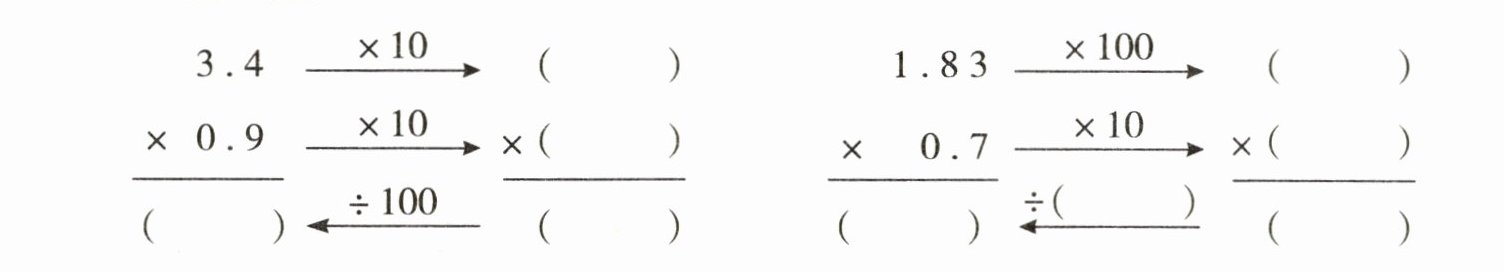 )位小数;$8.5×6.4$的积是(一