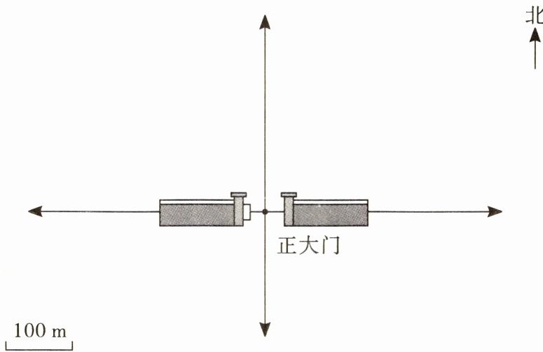 1. 孔雀馆在正大门的正西方向 300 m 处。