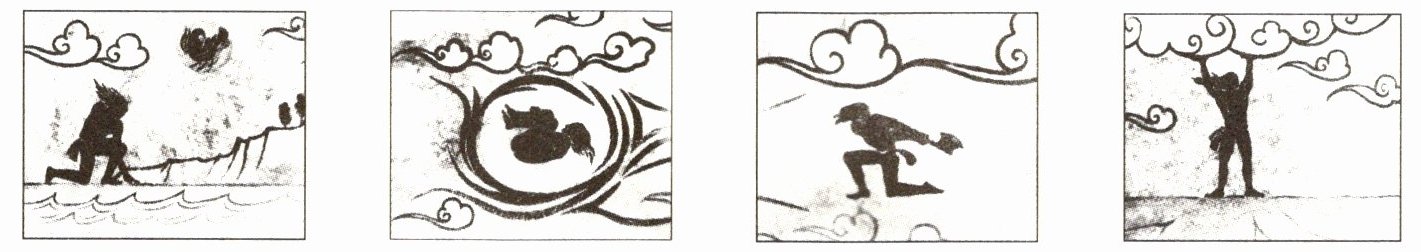 4 化为万物 1 混沌中沉睡 2 开天辟地 3 顶天立地