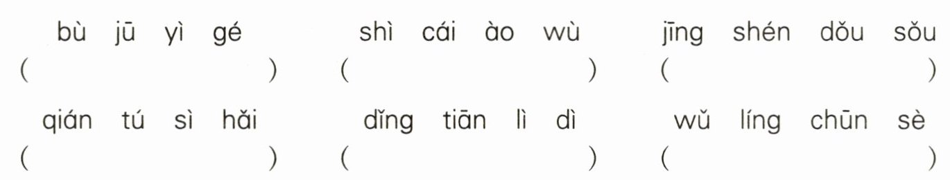 不拘一格、恃才傲物、精神抖擞、前途似海、顶天立地、五岭春色。