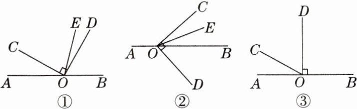 ②若 $ \angle AOC = \alpha $,则 $ \angle DOE = $