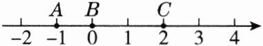 14. (12分)几何直观阅读理解:数轴上线段的长度可以用线段端点表示的数进行减法运算得到.例:如图,线段$AB = 1 = 0 - (-1)$,线段$BC = 2 = 2 - 0$,线段$AC = 3 = 2 - (-1)$.