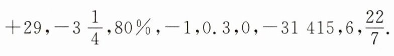分数:$\left\{ -3\dfrac{1}{4},80\%,0.3,\dfrac{22}{7} \right\}$;