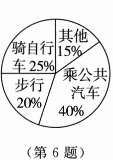 6. 某校学生到校方式情况的统计图如图所示,若该校乘公共汽车到校的学生有160人,则骑自行车到校的学生有(