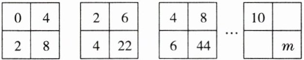 14. 如图,填在下面每个正方形中的四个数之间都有相同的规律,按照这种规律排列,最后一个正方形中 $m$ 的值是