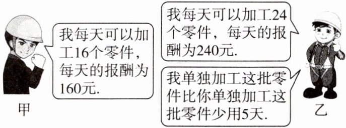 (2)这批零件先由乙单独加工5天,剩下的部分由甲、乙合作完成,那么加工完这批零件,甲、乙各获得多少报酬?