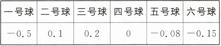 13. (8分)真实情境 [2025·合肥五十中月考]世乒赛中用球的质量有严格的规定,下表是$6$个乒乓球质量检测的结果(单位:克,超过标准质量的克数记为正数,不足标准质量的克数记为负数)。