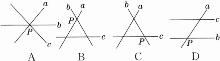 5. 按语句画图:点P在直线a上,也在直线b上,但不在直线c上,直线a,b,c两两相交. 下列正确的是(