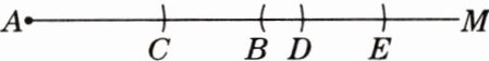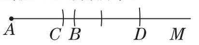 7. [2025年1月金华期末]如图,在操作课上,同学们按老师的要求操作:①作射线 $ AM $;②在射线 $ AM $ 上顺次截取 $ AC = CD = 5\ cm $;③在射线 $ DM $ 上截取 $ DE = 3\ cm $;④在线段 $ EA $ 上截取 $ EB = 4.5\ cm $,发现点 $ B $ 在线段 $ CD $ 上. 由操作可知,线段 $ CB = $(