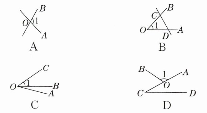 2. 下列四个图形中,能用$\angle 1$,$\angle AOB$,$\angle O$三种方法表示同一个角的是(