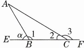 ∠α;∠ABC(或∠ABF);∠ACB(或∠ACE);∠ACF