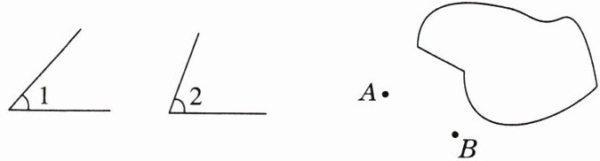 6. (8分)真实情境小亮的一张地图上有$A$,$B$,$C$三个城市,地图上的$C$城市被墨迹污染了(如图),但知道$∠BAC = ∠1$,$∠ABC = ∠2$,请你用尺规作图的方法帮他在图中确定$C$城市的具体位置.(保留作图痕迹,不写作法)