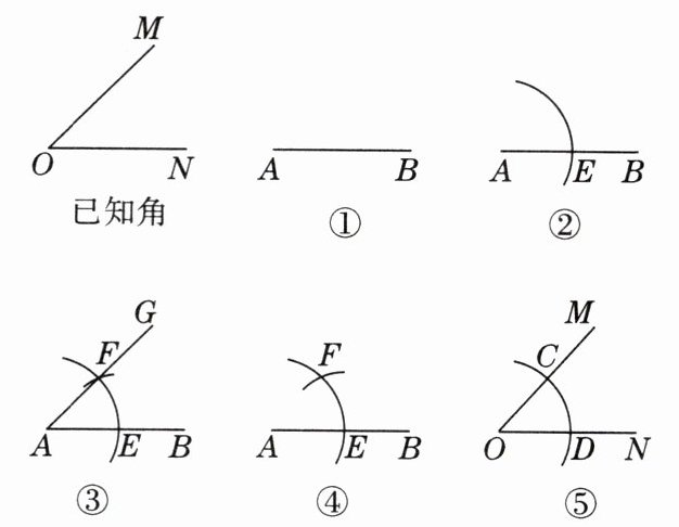 1. 如图,作一个角等于已知角(尺规作图)的正确顺序是
