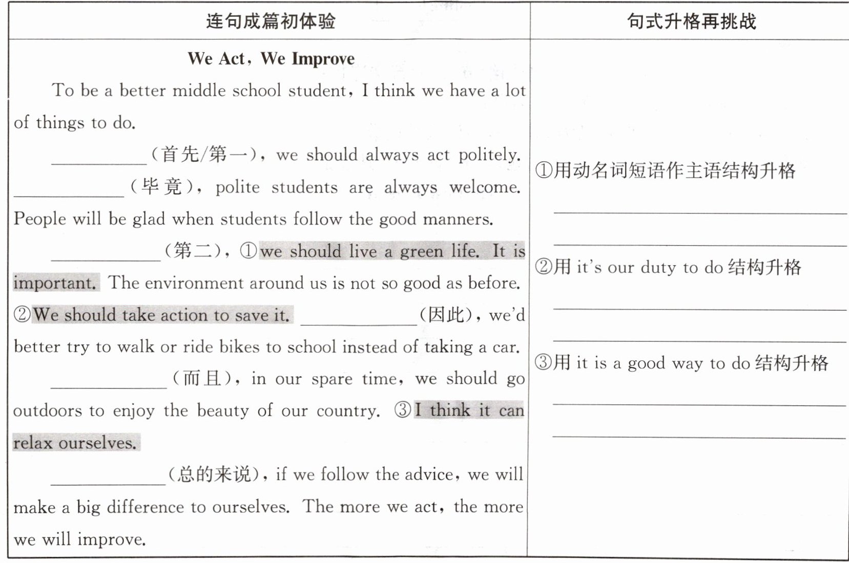 Step 4 仔细检查,认真书写(将升格后的文章写在下面的横线上)