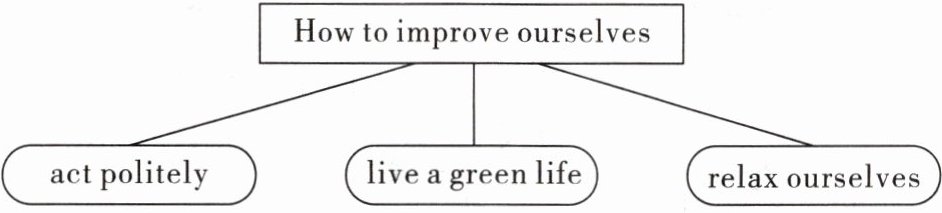 做一名有素养的中学生是我们每一个人的目标。你校英语社团正在开展“We Act,We Improve”的讨论。请结合下面图示信息,用英语写一篇短文,谈谈应该如何行动起来提升自我。