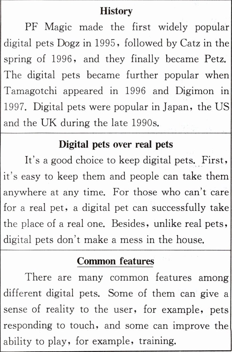 )2. What does the writer think of keeping digital pets?A. Cheap.