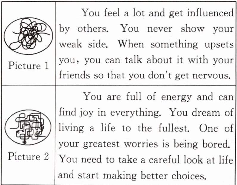 )1. Which picture may you draw if you are afraid of being bored?A. Picture 1.