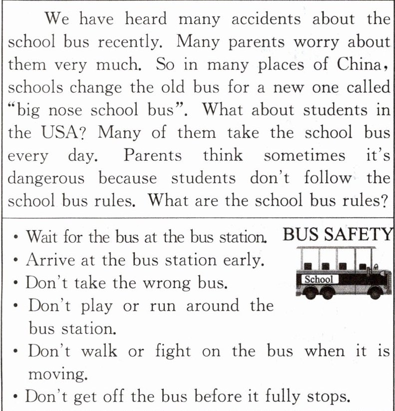 )3. What should students do according to the school bus rules?A. Wait for the bus at home.