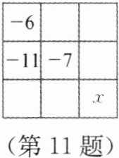 11. 如图,在数学方阵中,每行$3$个数之和与每列$3$个数之和均相等,且都等于对角线上$3$个数之和,则$x=$