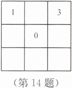 14. 在如图所示的每个方格中分别填入一个数,使每行、每列、每条对角线上的三个数之和都等于$0$。