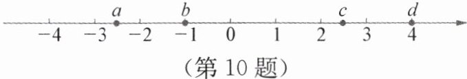 10. 如图,有理数$a$、$b$、$c$、$d$是数轴上的对应点所表示的数,则$a - b + c - d$的值为 【 】