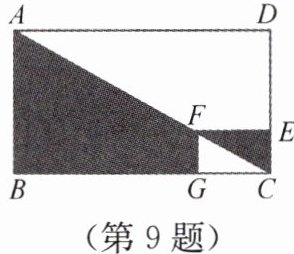 9. 如图,四边形 $ABCD$ 和 $CEFG$ 都是矩形,若 $AB = a$,$AD = b$,则阴影部分的面积是