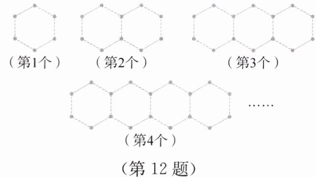 12. 如图所示,在由火柴棒拼出的图形中,第 $n$ 个图形由 $n$ 个正六边形组成,通过观察可以发现: