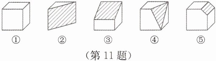 11. 如图,图①是一个正方体木块,把它切去一块可能得到如图②③④⑤所示的木块.
