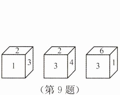 9. 有一个正方体木块,它的6个面分别标有数字1~6,如图是从不同方向看到的这个正方体木块上的数字,则数字6对面的数字是 【 】