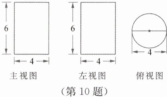 10. 如图是一个立体图形的三视图,根据图中标注的数据可求得这个立体图形的体积为 【 】