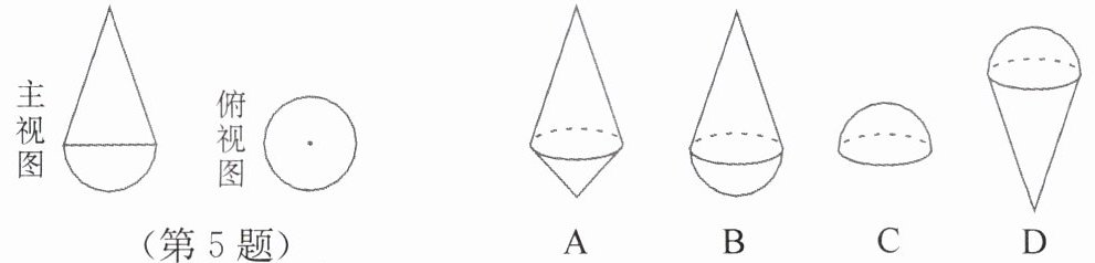 5. 如图所示的主视图和俯视图所对应的物体是【 】