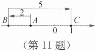 11. 如图,数轴上的一动点$A$向左移动$2$个单位长度到达点$B$,再向右移动$5$个单位长度到达点$C$.若点$C$表示的数为$1$,则点$A$表示的数为 【 】