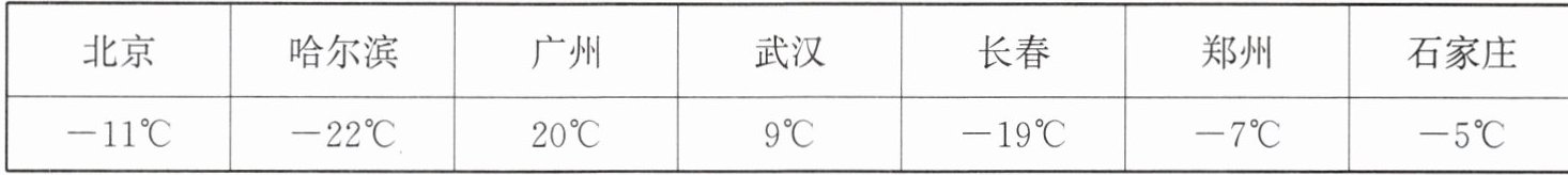 (1)将各城市的平均气温按从高到低的顺序进行排列,并用“$>$”号连接起来;