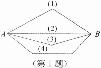 1. 若A地到B地有4条路线可以走,如图所示,则其中最近的一条路线的序号是【】