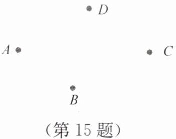 15. 如图,有 $A$、$B$、$C$、$D$ 四个城市,现要建一座大电站向四个城市供电,问:大电站建在什么位置,可使送电电缆总长度最短?