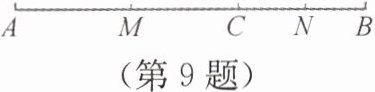 9. 如图,点C是线段AB上的一点,点M是线段AC的中点,点N是线段BC的中点,如果$ AB = 10\mathrm{cm} $,$ AM = 3\mathrm{cm} $,那么$ NC = $