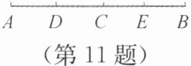 11. 如图,已知点C是AB的中点,点D是AC的中点,点E是BC的中点。