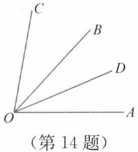 14. 如图,$\angle AOB + \angle BOC = 80°$,且$\angle AOB:\angle BOC = 3:2$,$OD$平分$\angle AOB$,则$\angle COD =$