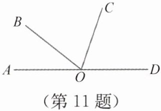 11. 如图,$\angle AOD$是平角,$OC$是$\angle BOD$的平分线,若$\angle AOB = 40°$,求$\angle COD$的大小.