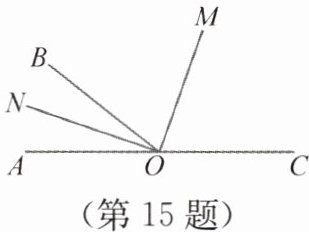 15. 如图,$\angle AOC$为平角,$OM$、$ON$分别平分$\angle BOC$和$\angle AOB$,求$\angle MON$的大小.