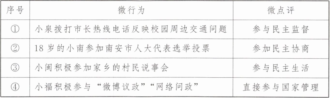 |④|小福积极参与“微博议政”“网络问政”|直接参与国家管理|