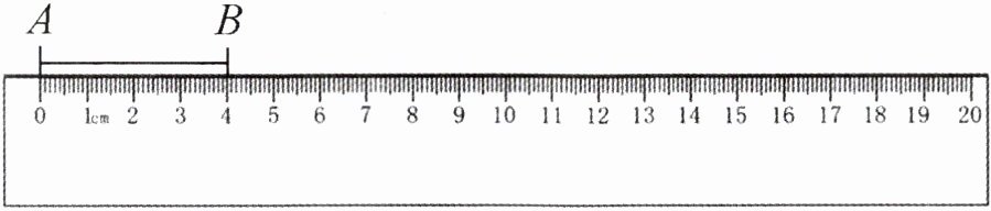 (6)用字母A,B标出一条线段的两个端点,如下图,读作( )。量这条线段的长度时,将线段端点A对准直尺刻度( ),读出端点B所对直尺的刻度,就是这条线段的长度,这条线段长( )厘米。