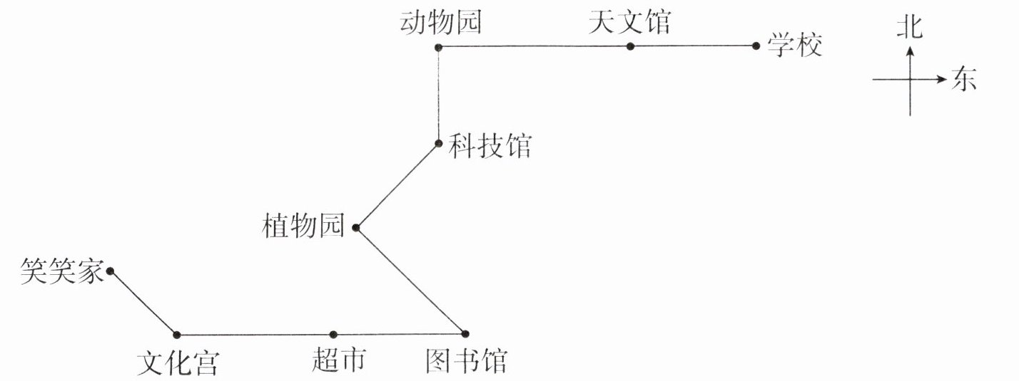 (3) 笑笑从动物园上车后,先向____行驶 1 站到科技馆,再向____行驶 1 站到植物园,再向____行驶 1 站到图书馆,最后向____行驶 2 站到文化宫。