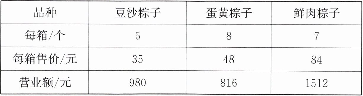 (4)端午节又称端阳节、龙舟节等,与春节、清明节、中秋节并称为中国四大传统节日,也是我国第一个入选世界非物质文化遗产的节日,在这一天民间有吃粽子的习俗。下表是新星商店端午节粽子的销售情况,请你根据所学到的数学知识提出一个数学问题,并解答。