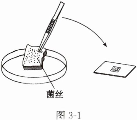 菌落。2. 制作霉菌的临时装片(如图 3 - 1)。