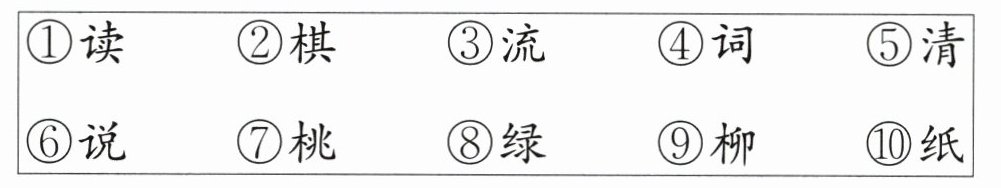 ⑥说 ⑦桃 ⑧绿 ⑨柳 ⑩纸